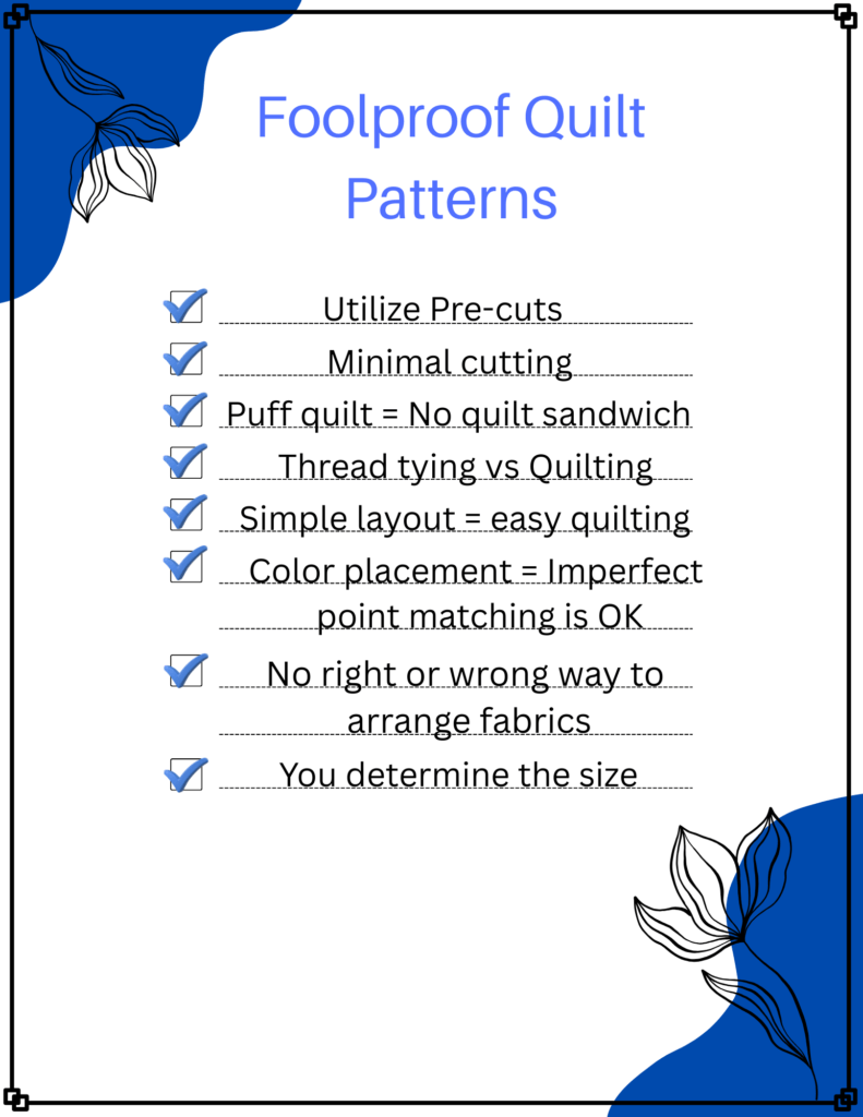 In summary, here is a list of things to consider when making a quilt that is simple, quick and above all – Foolproof: